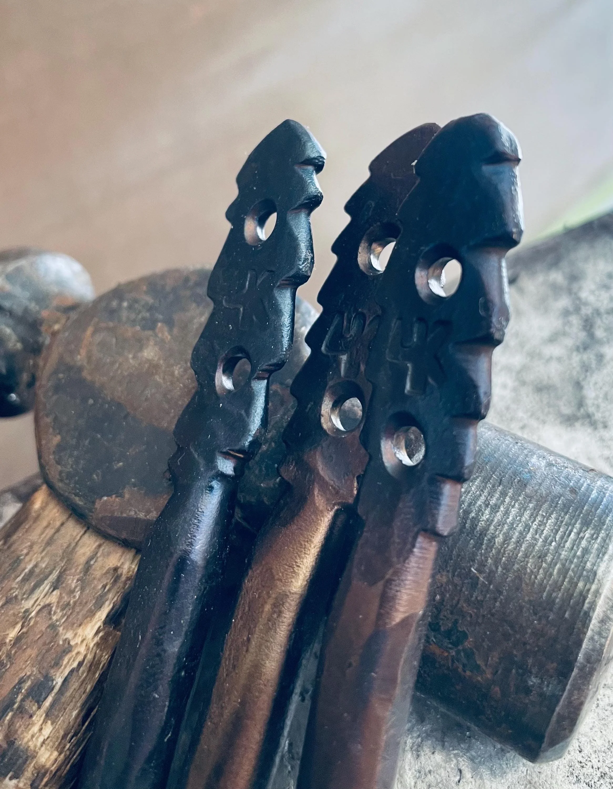 Size differences, variations will occur as these are 100% hand made in the truest way, no bulk cut blanks that are just cut & bent, it's all fire, hammer, & Anvil.