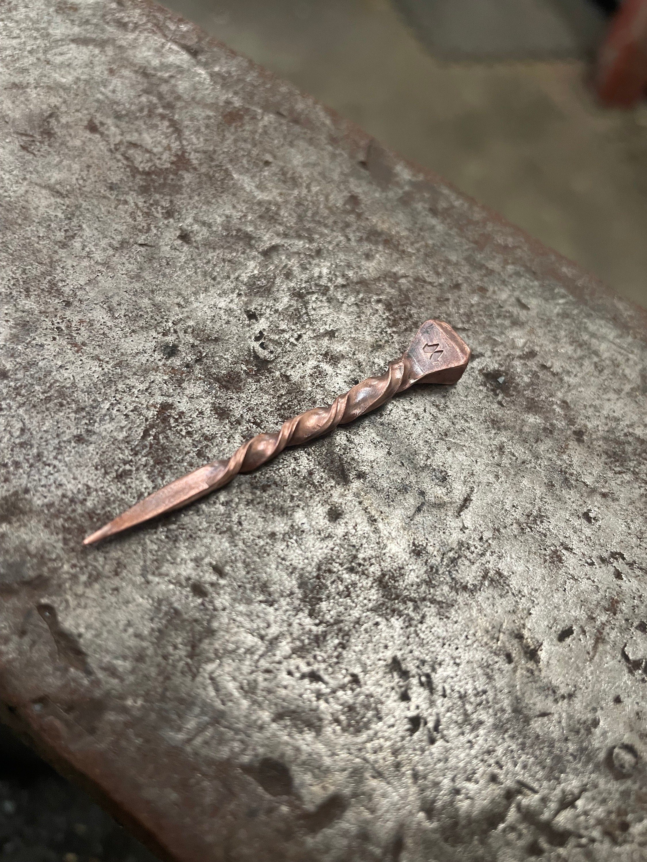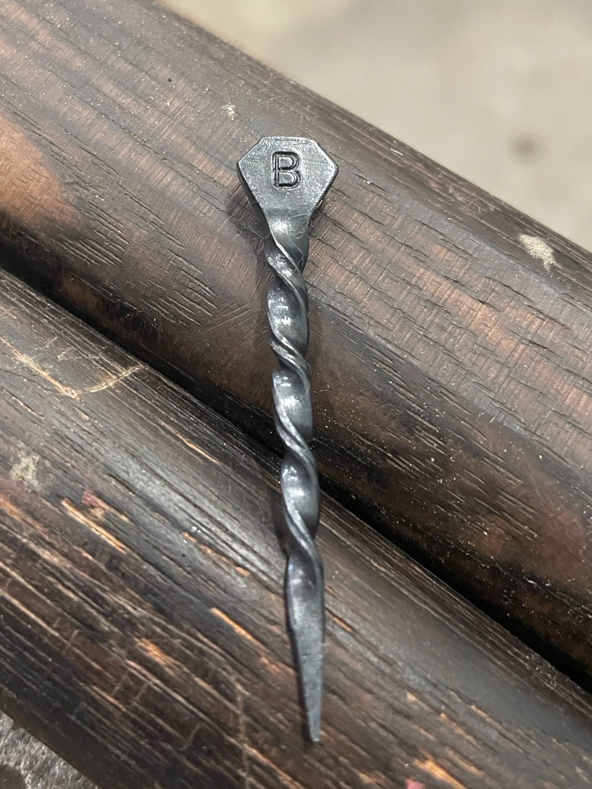 Hand forged on my grandfather's anvil. Cowboy toothpicks ... stick 'em in your cowboy hat or any other cap. Add a stamped letter to make it custom!